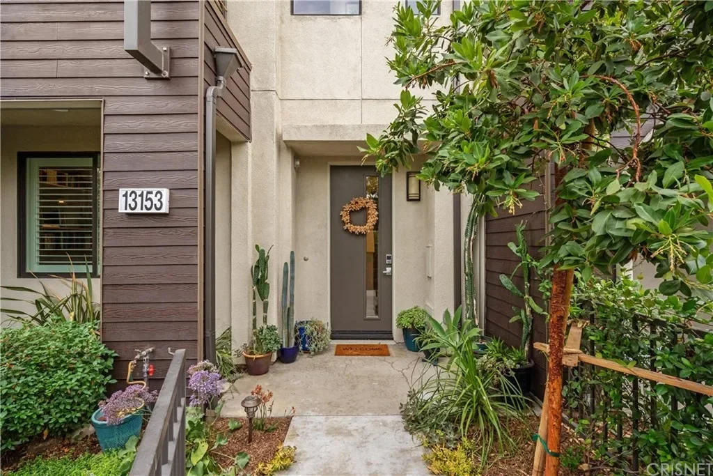 Enter through the landscaped drought-tolerant front yard to the first floor with a bedroom and full bathroom, providing the perfect private guest suite or work-from-home office space.